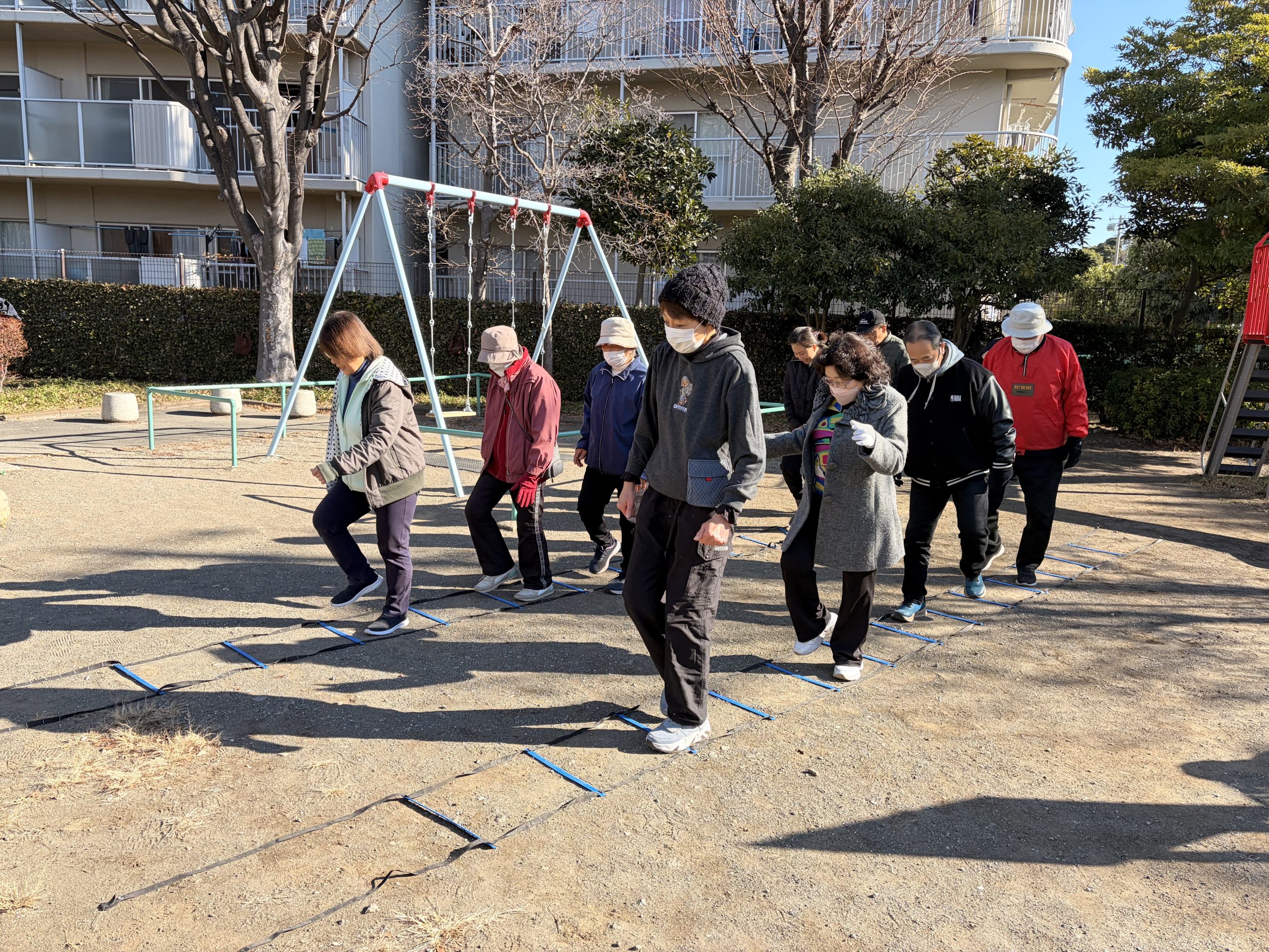 寒さに負けず、ストレッチとラダーを行いました😊