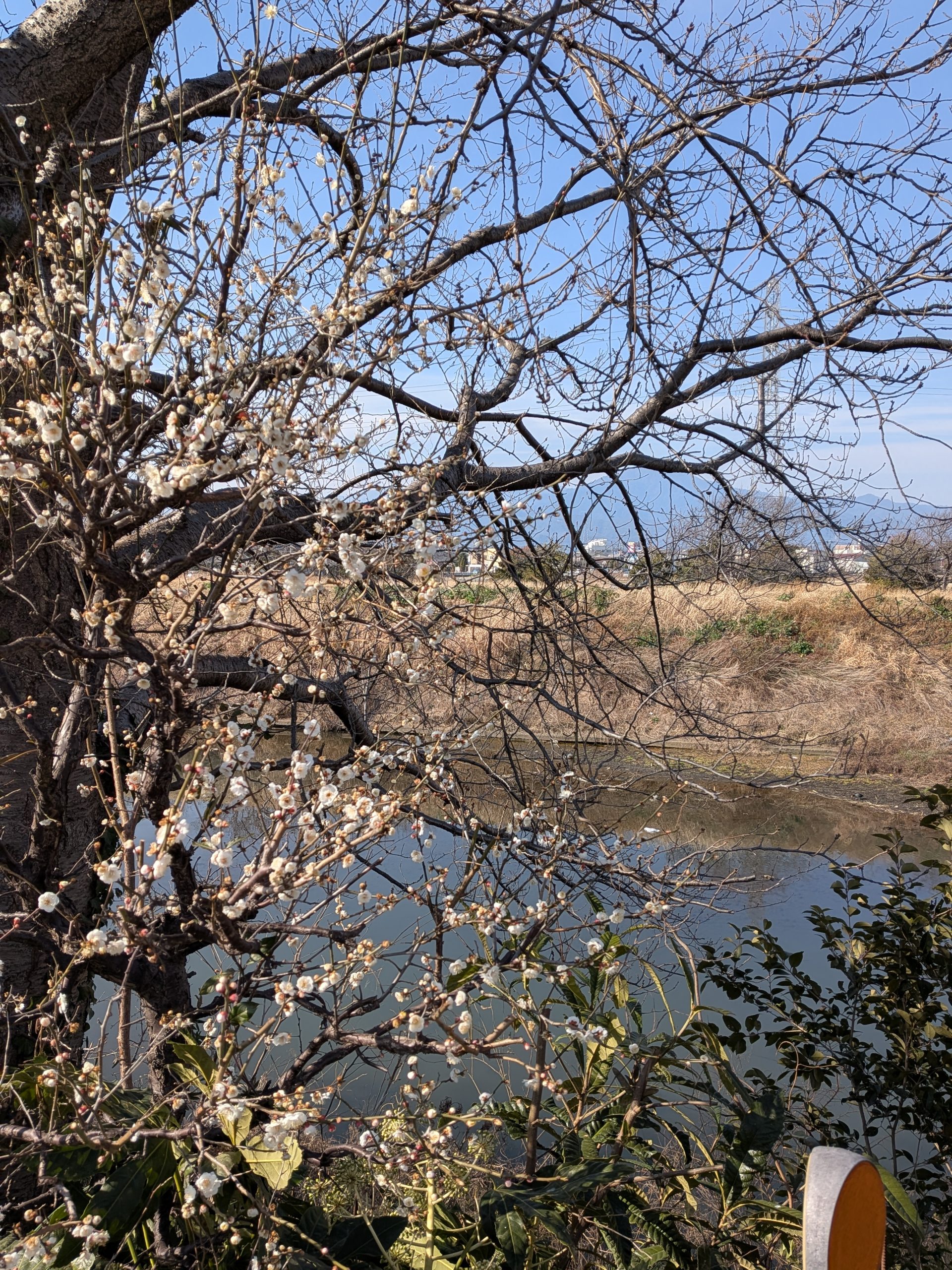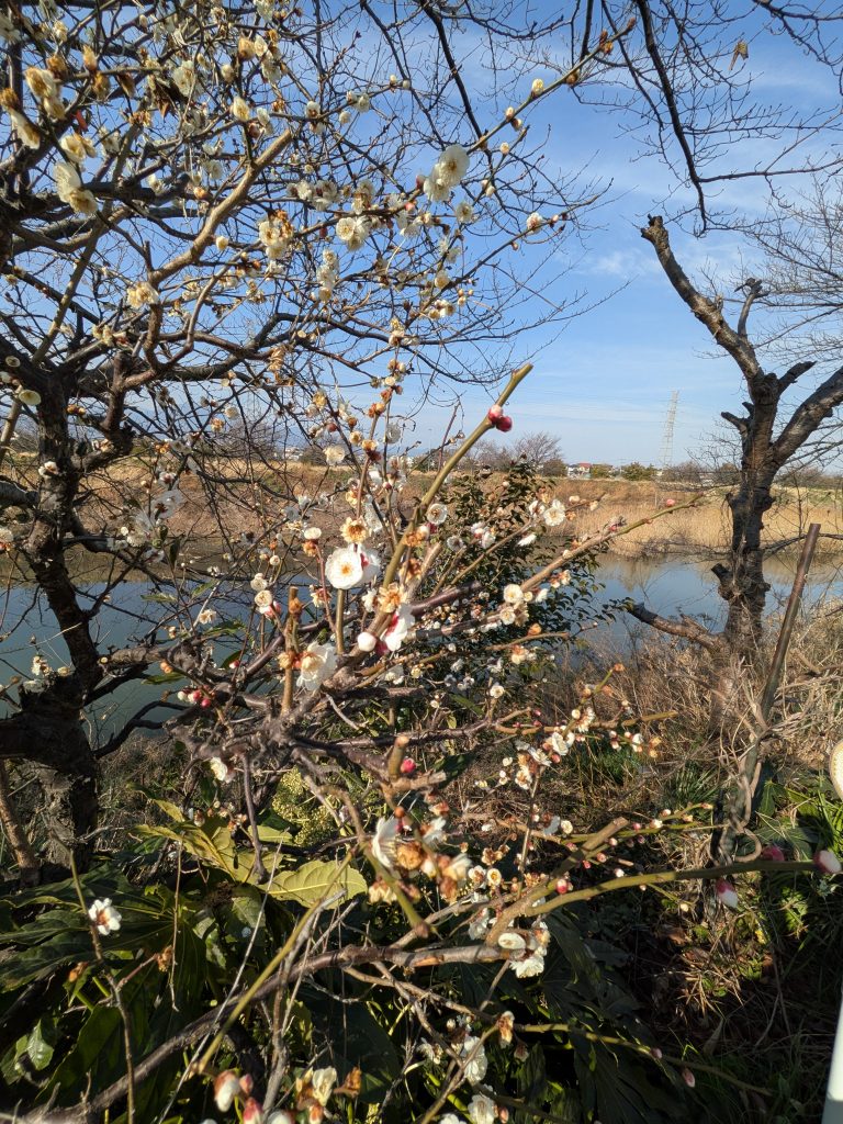 6日、徒歩で訪問していると渋田川沿いの梅が開花していました(^^♪